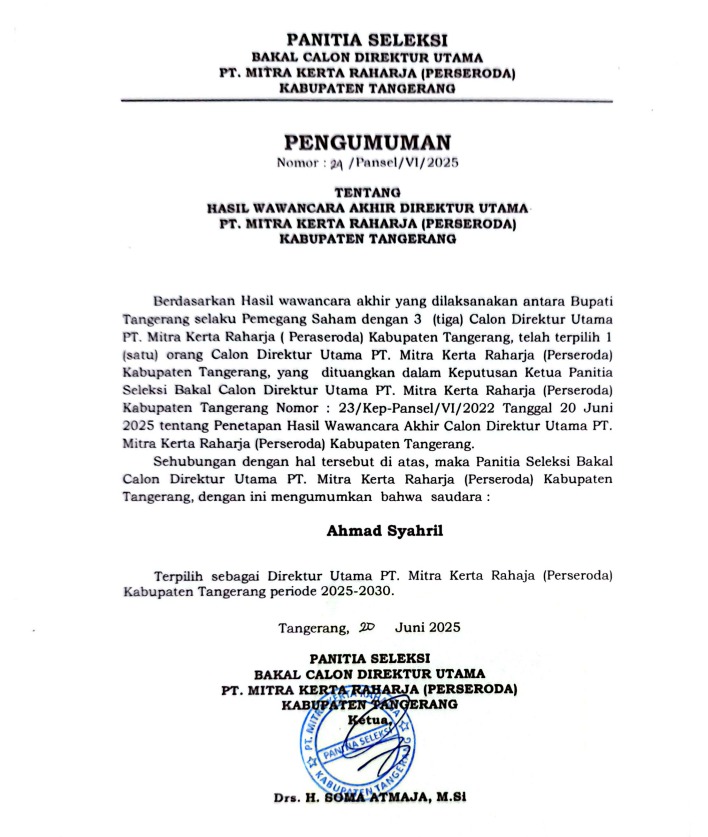 HASIL WAWANCARA AKHIR DIREKTUR UTAМА PT. MITRA KERTA RAHARJA (PERSERODA) KABUPATEN TANGERANG