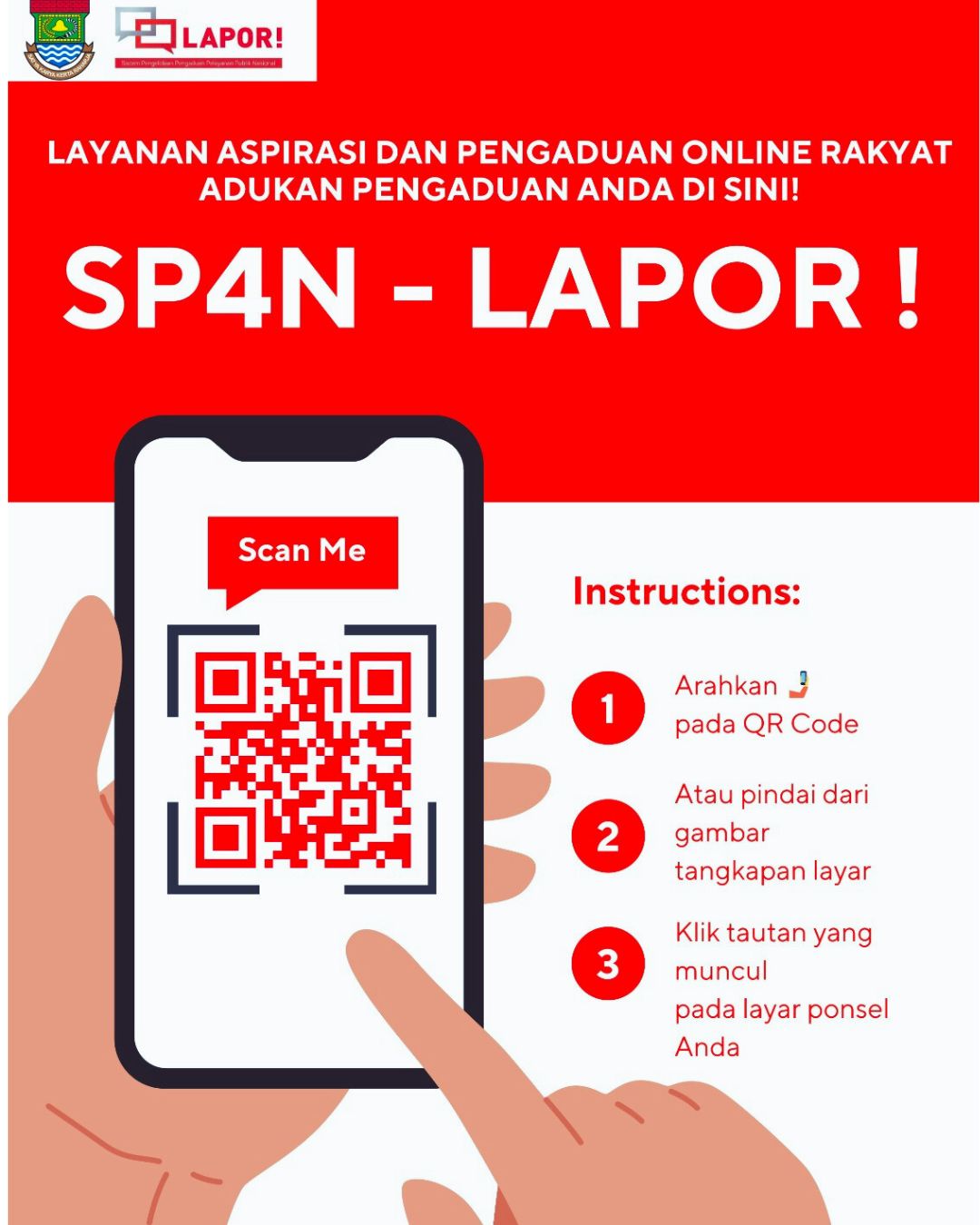 - Atau, pindai dari tangkapan layar (screenshot) poster SP4N-LAPOR!