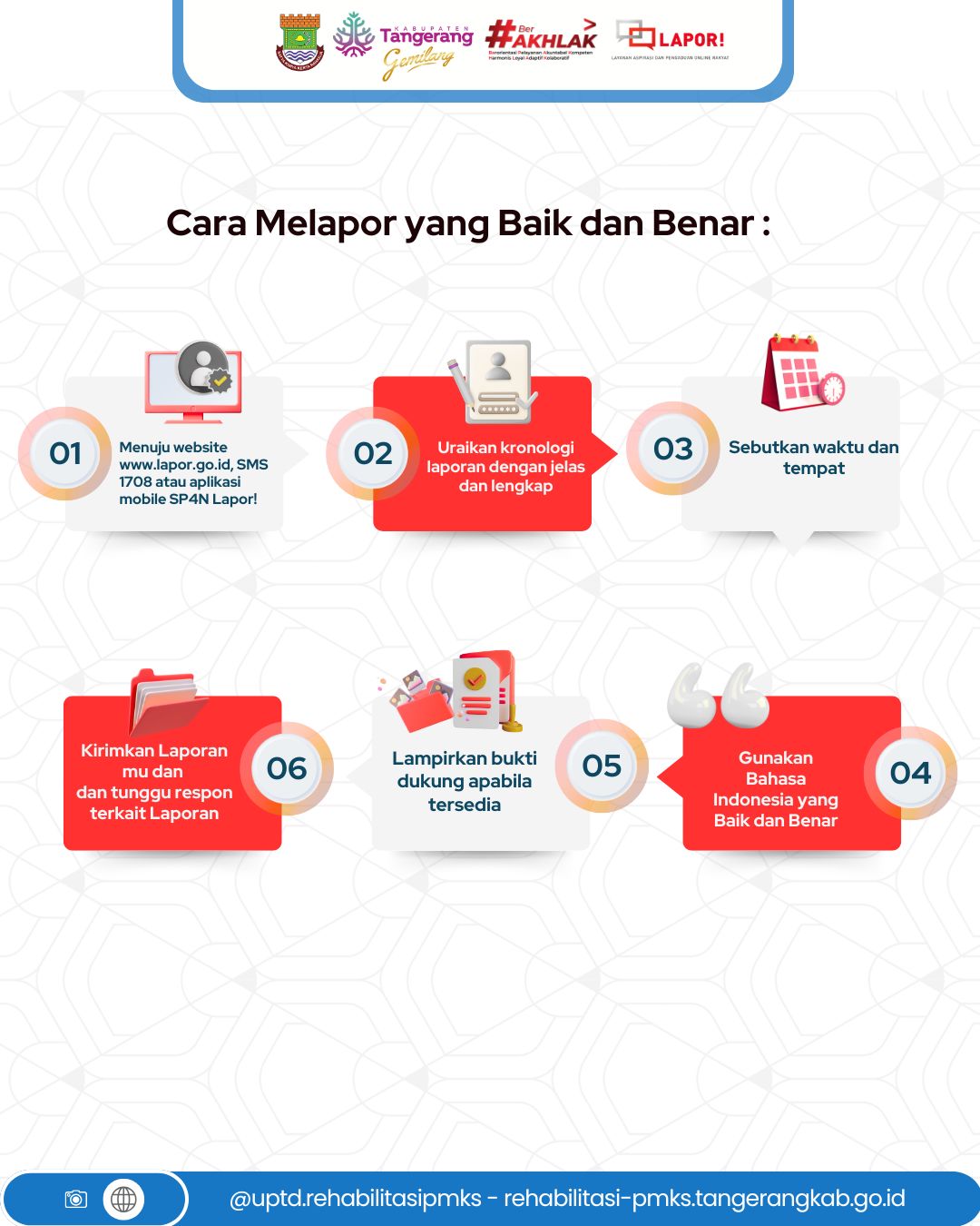 Melalui SP4N-LAPOR!, masyarakat dapat dengan mudah menyampaikan berbagai keluhan, aspirasi, saran, maupun laporan terkait penyelenggaraan pelayanan publik di lingkungan UPTD Rehabilitasi PMKS.